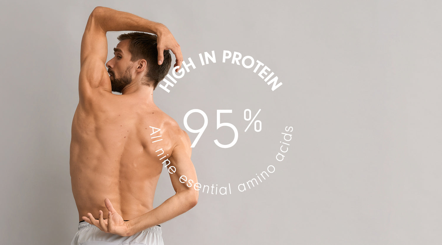 - Højt proteinindhold (95%) med 20 aminosyrer